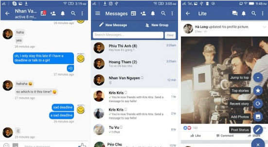 - Hanya 3MB dan 15MB kira-kira setelah menginstal dibandingkan dengan ratusan MB oleh official Facebook dan Messenger